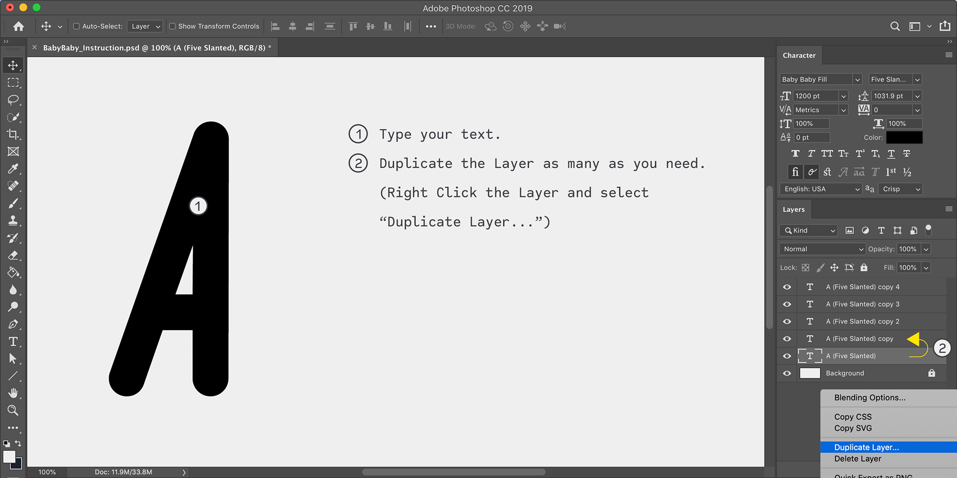 2. Set font-name "Baby Baby Fill".