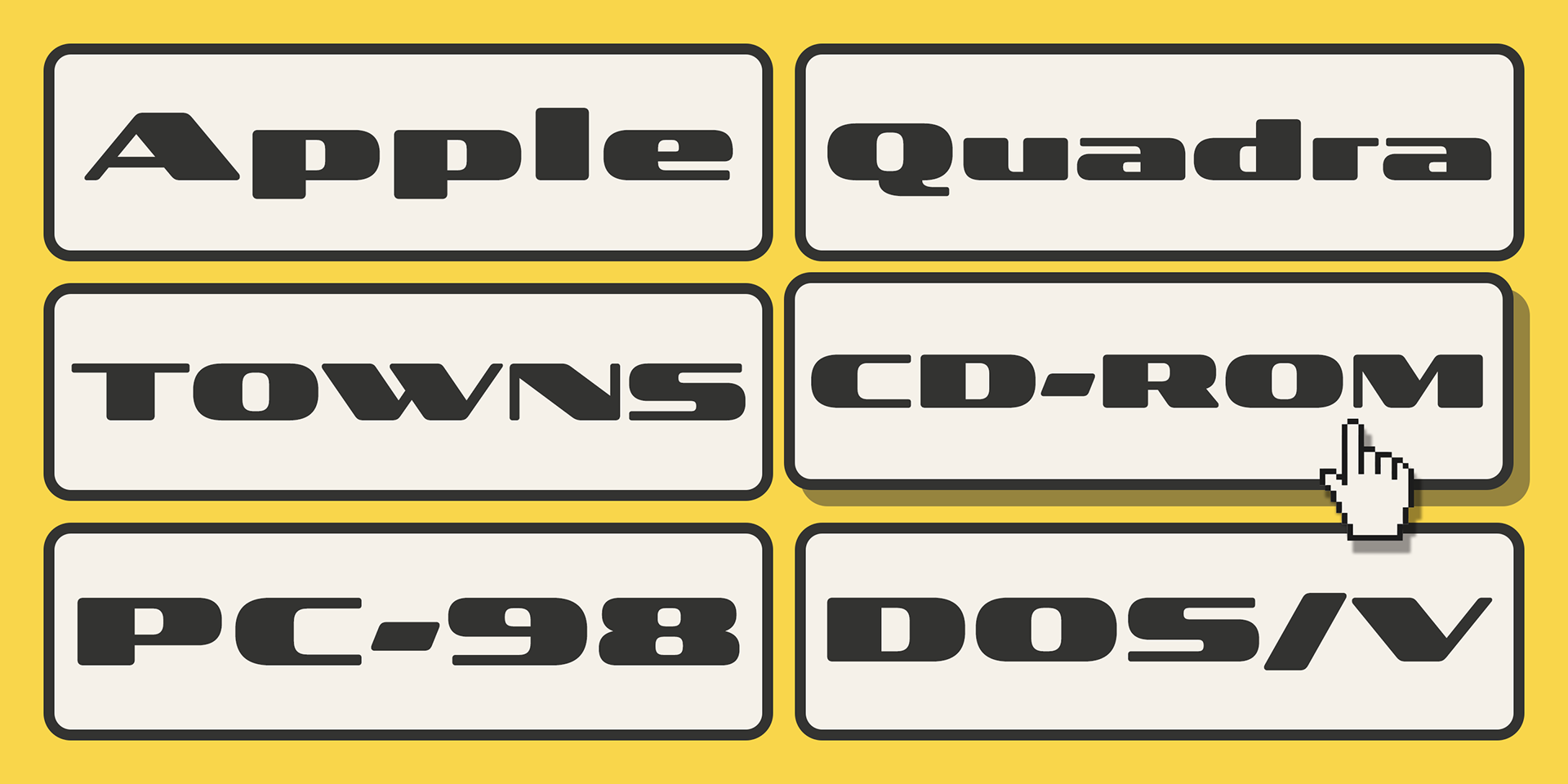 Madromit (pronounced ma-do-ro-mi) is a nostalgic display typeface inspired by the vibrant era of 1980s–1990s computer advertisements—a time many consider the most exciting in the history of digital technology. This style, often referred to as Primitive Digital Design, forms the core concept behind Madromit.