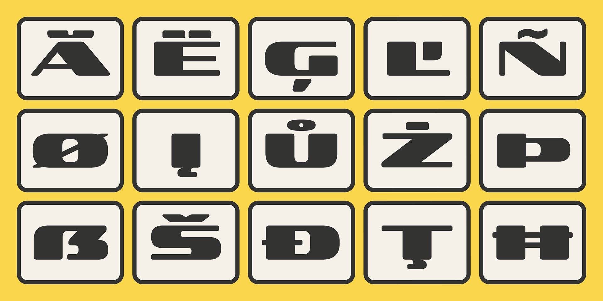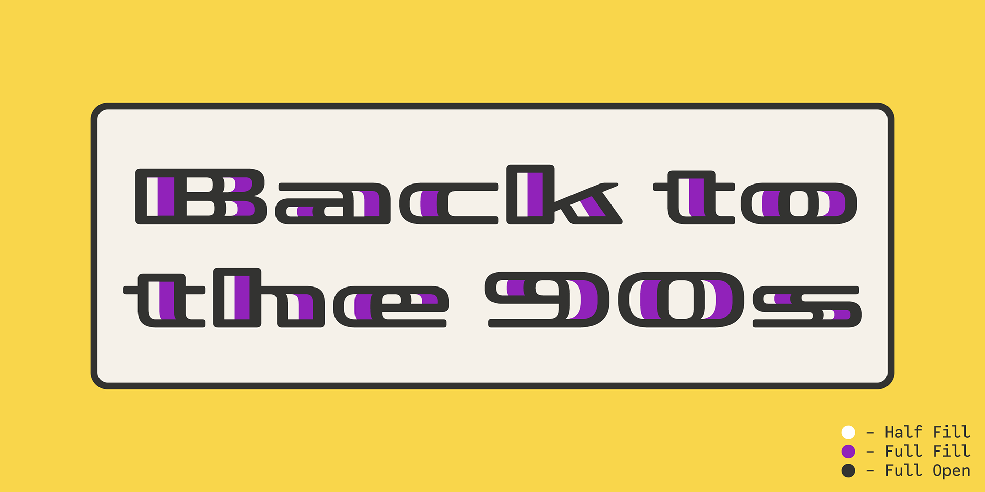 The typeface revives and reinterprets the visual language of that era through geometric construction, a grid-based design, and signature elements like rounded corners, oval bowls, and right-angled joints—all hallmarks of early digital aesthetics.