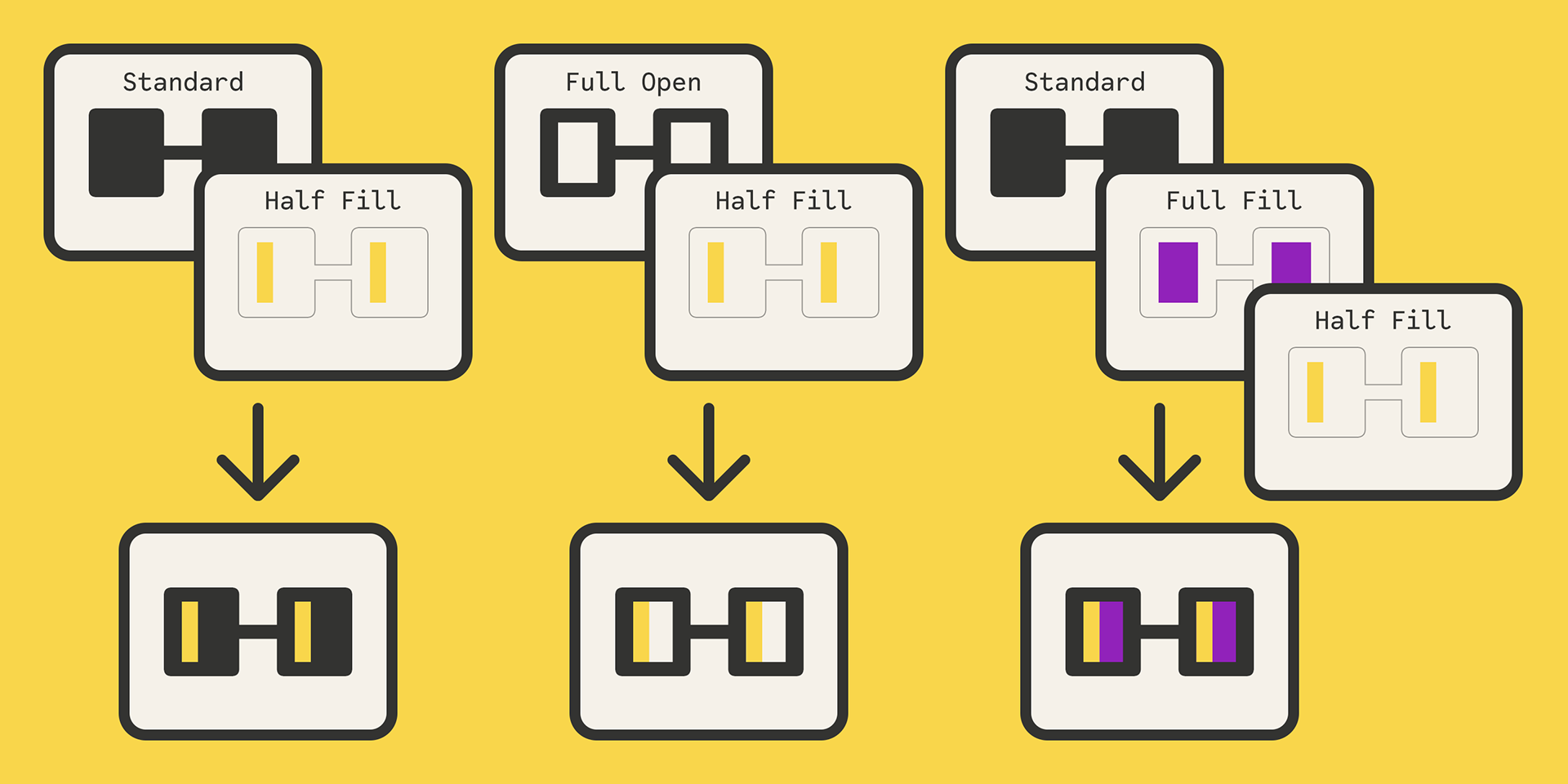 The “Standard” style serves as the base. To achieve the classic Open Style effect, simply stack one or more “Fill” layers on top of it.
