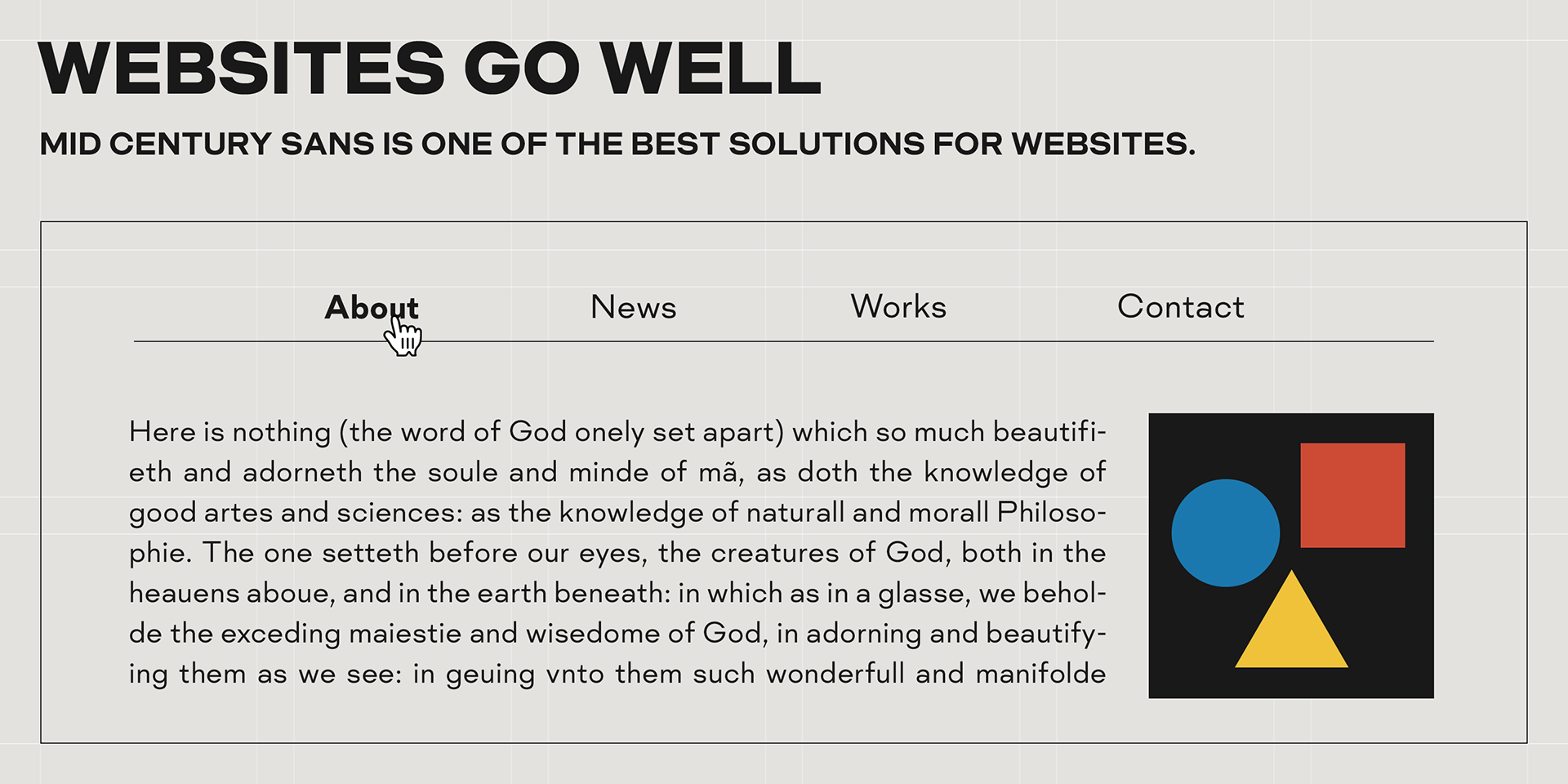 Mid Century Sans (MCS) is a typeface built on the foundation of highly geometric shapes.